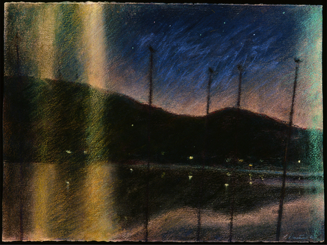 Aurora, Stars & Masts • 20 in x 30 in • oil pastel & tempera on paper