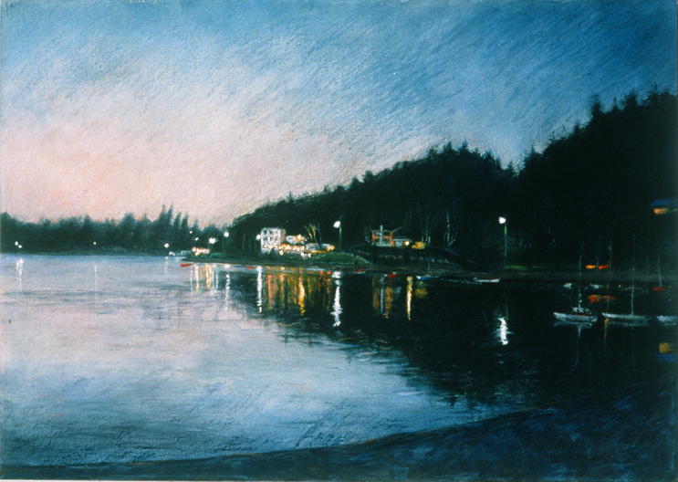L'Heure Bleue • 24 in x 34 in • oil pastel, dry pastel & acrylic on canvas