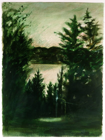 Lac Raymond, April • 14 in x 19 in • oil pastel & acrylic on canvas
