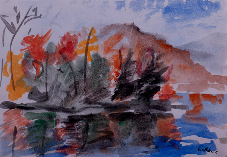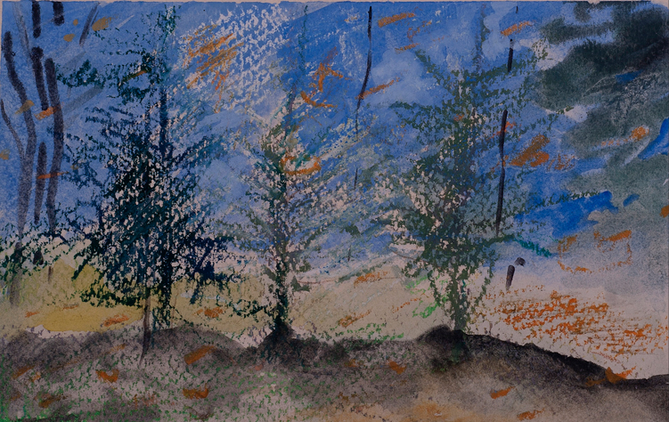 Summer's End • 7 in x 11 in • oil pastel & watercolour on paper