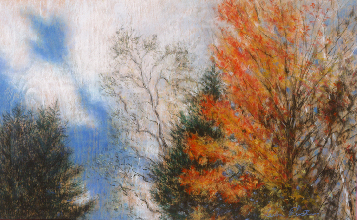 Pond in Autumn • 22 in x 37 in • pastel on wood