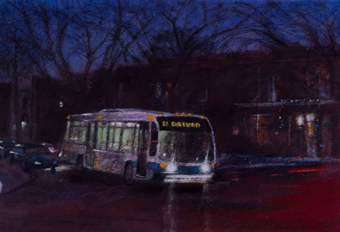 Night Bus • 21 in x 30 in • oil pastel & ink on paper